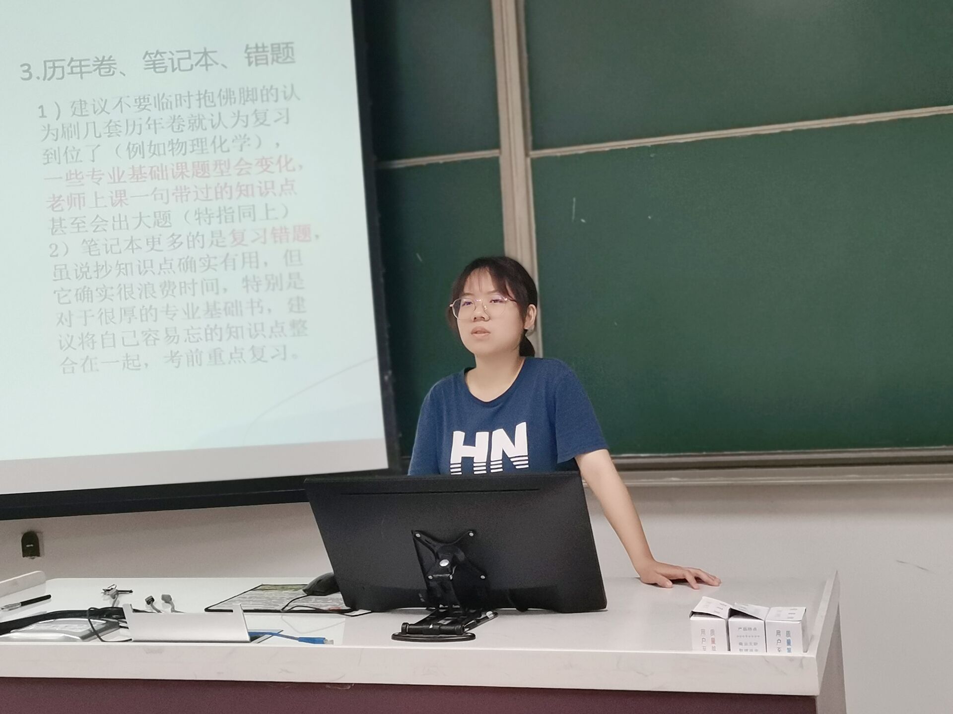 最后,由本年段周颖彤同学、邢凯荣同学进行学习经验分享环节,周颖彤同学结合自身学习经验给同学们分享了OneNOte软件、思维导图、反思错题等多种复习途径及方法,邢凯荣同学则劝告同学们,要做好复习计划、合理利用复习资料、根据各科目特点复习。两位同学的分享都让同学们受益匪浅。