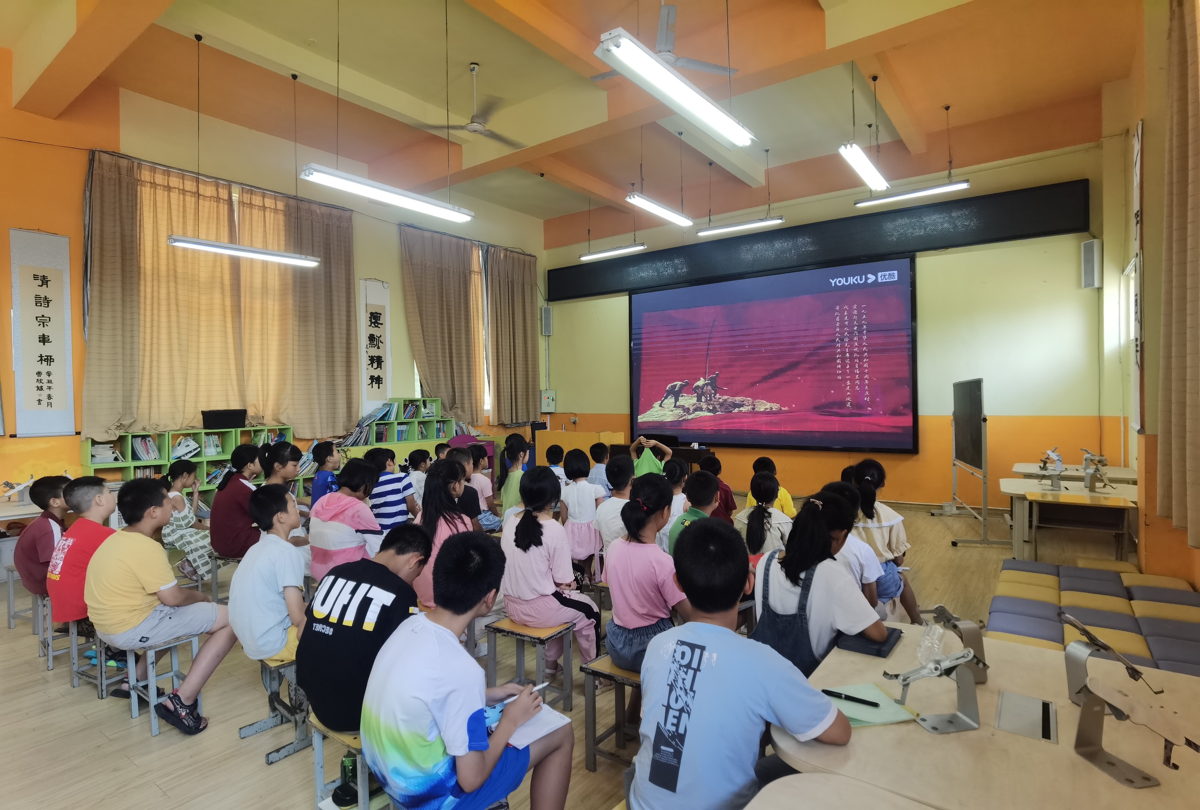 实践队与曹坊中心小学学生观看《风展红旗如画》情景剧