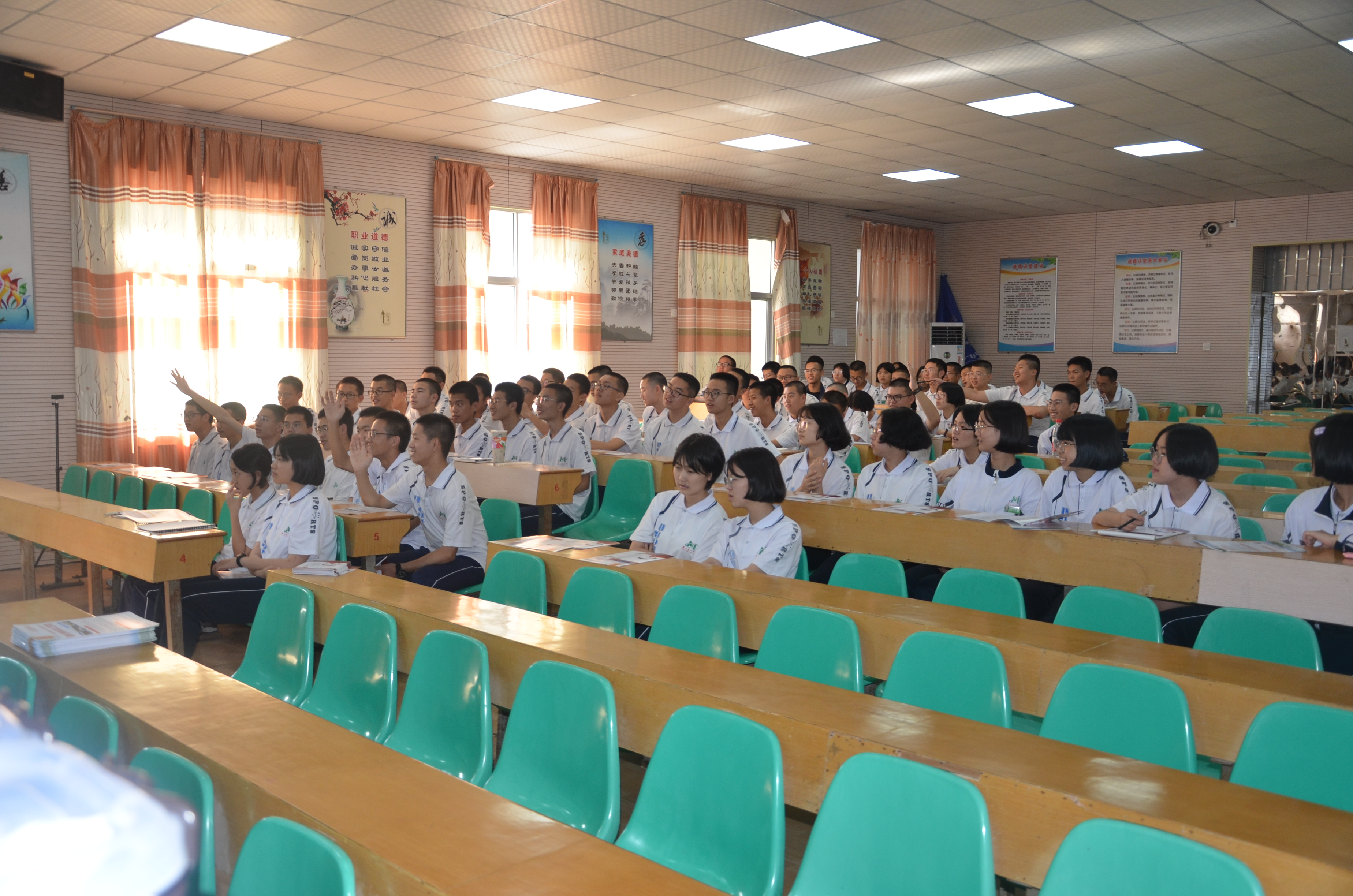 在宣讲过程中,宣讲人与在场的同学们进行了积极的互动,同学们积极举手回答问题,发表他们对材料的理解。伴随着互动问答和一个个引人入胜的小故事,整场宣讲的氛围变得积极活跃。同学们认真听讲,认真思考,重新树立对材料的认知。在宣讲的结尾,作为学长学姐的实践队员们向在场的同学分享了他们对高考的一些经验教训和心得体会。同时,队员们也回答了同学们对学习、高考和大学生活的一些问题。