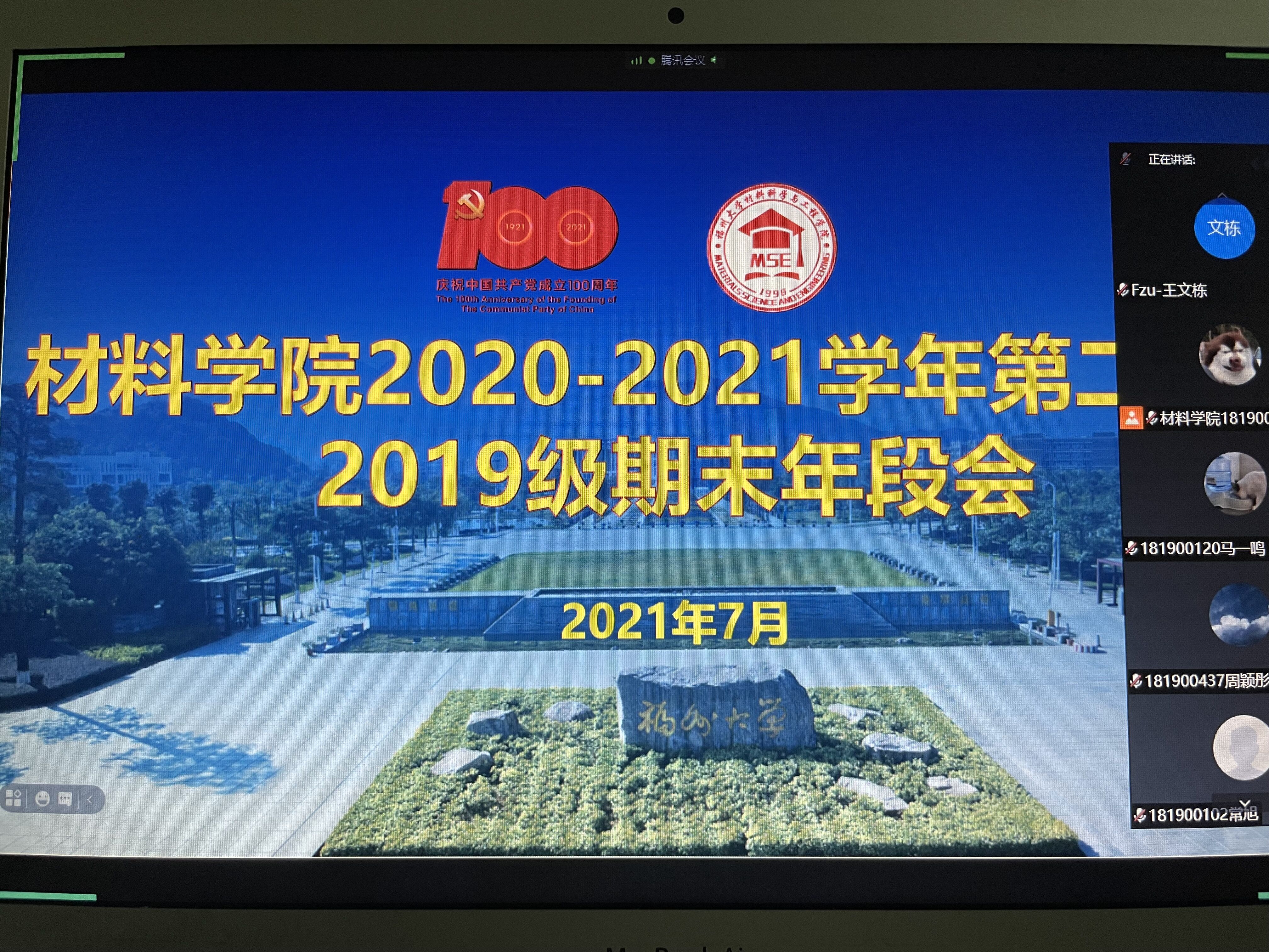 为落实疫情防控要求,顺利开展暑期工作,7月8日晚,我院2019级召开了本学期年段会议。本次会议采用腾讯会议线上召开的形式,由辅导员王文栋老师主持,全体2019级同学参加本次会议。