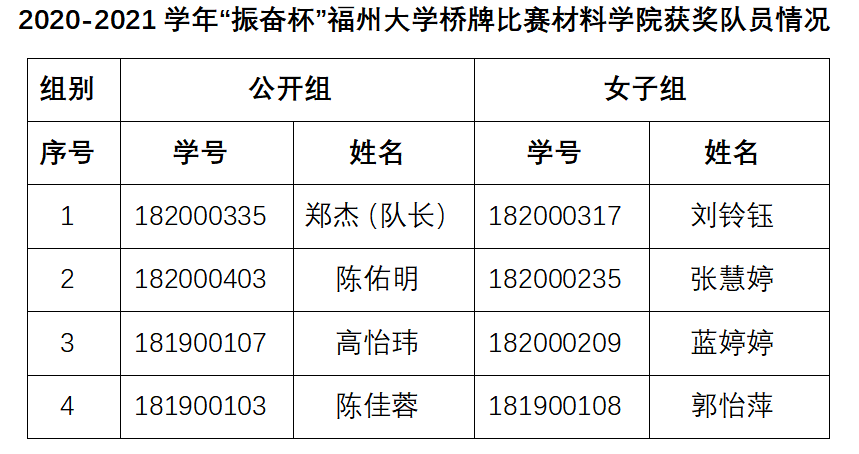 5日29日,2020-2021学年“振奋杯”av在线看 桥牌比赛顺利落幕,我院一共派出郑杰等8人参与公开组、女子组比赛,最终凭借公开组第六名、女子组第七名的表现获得团体总分第六名的优异成绩!在此,对获奖队员所取得的优异成绩表示衷心的祝贺!