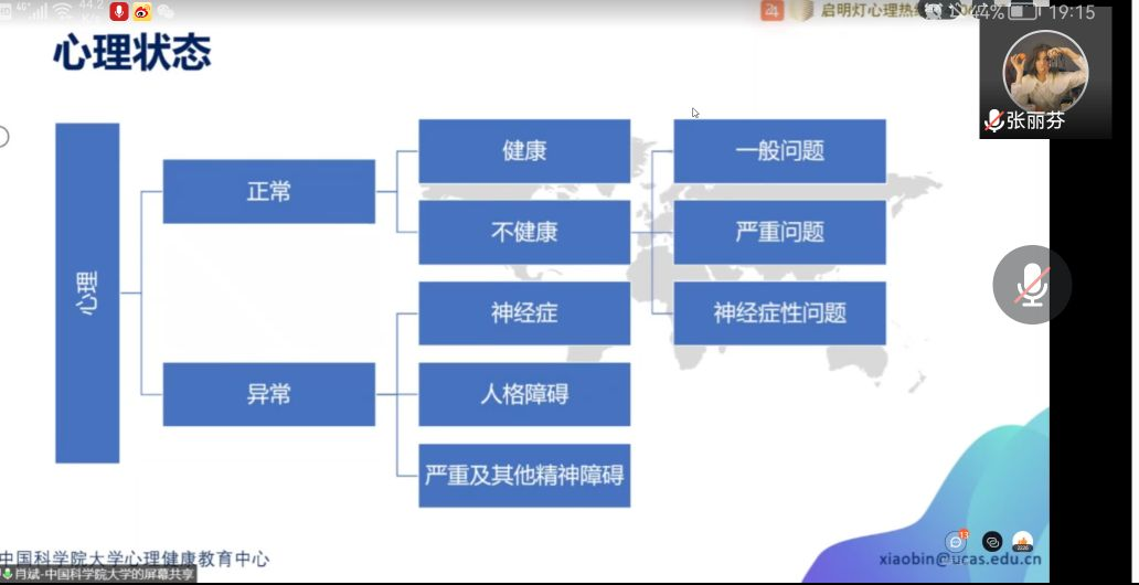 为做好春季大学生心理健康教育工作,提升广大学生的心理健康素养,2月21日晚上,av在线看 全体政工干部及各年级学生在线学习了中国科学院大学心理健康教育中心主任肖斌博士主讲的2022年春季开学心理第一课。我院各年级负责人通过腾讯会议等方式进行转播,共有1113位同学参与观看。