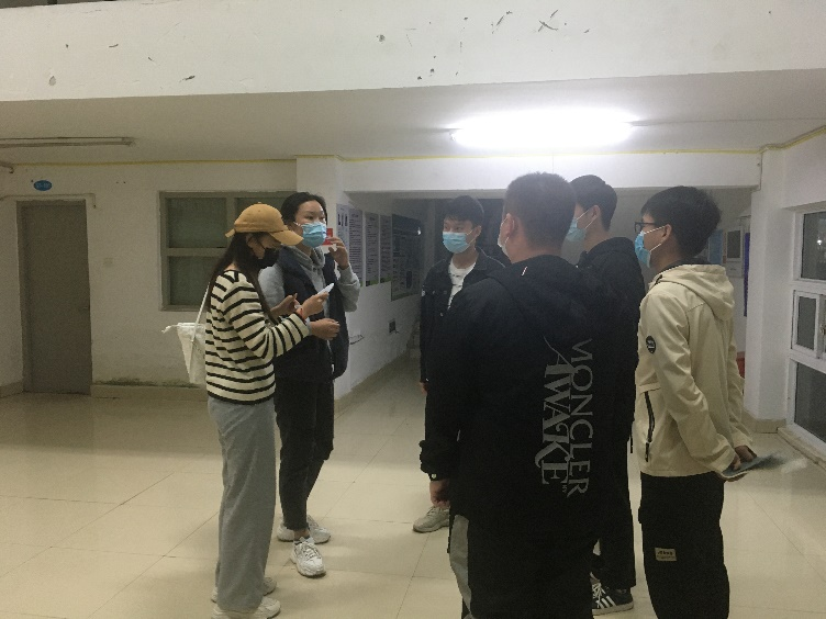 随后辅导员老师带领主要干部走访学生宿舍,对卫生、用电等防疫、安全情况进行摸排。在走访过程中,牛秋月老师对环境卫生较好、布置整洁的宿舍进行表扬,对存在问题的宿舍提出了整改意见。牛秋月老师强调,在疫情期间,同学们首先需要保持好环境卫生,及时清理垃圾,餐盒快递包装等不宜长期堆放在宿舍,建议同学们定期进行集体大扫除;其次要增强消防意识,注意用电安全,电线排插不上床、不空插,坚决杜绝违规电器;最后告知学生不串门、不聚集、不网购、不点外卖、多看书、少玩游戏,早睡早起,养成良好生活习惯,营造浓厚学习氛围,共同打好疫情阻击战。